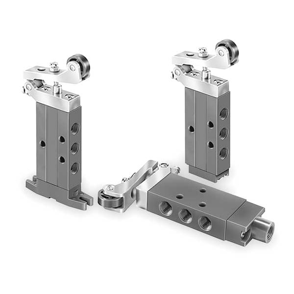 Manual Air Control Valve, Valve Ways and Positions 3-Way/2-Position, Valve Port Size 1/8 in, Connection NPT, Valve Actuator / Return Roller / Spring, Max. CFM - Valves 0.2 cfm, Valve Max. Pressure Rating 150 psi, Valve Temp. Range 32 Degrees to 175 Degrees F, Center Position Closed, Coefficient of Volume 0.2, Body Material Aluminum, Overall Length 5 in, Overall Height 2 1/4 in, Overall Width 5/8 in, Series DirectAir 2, Manual Air Control Valve