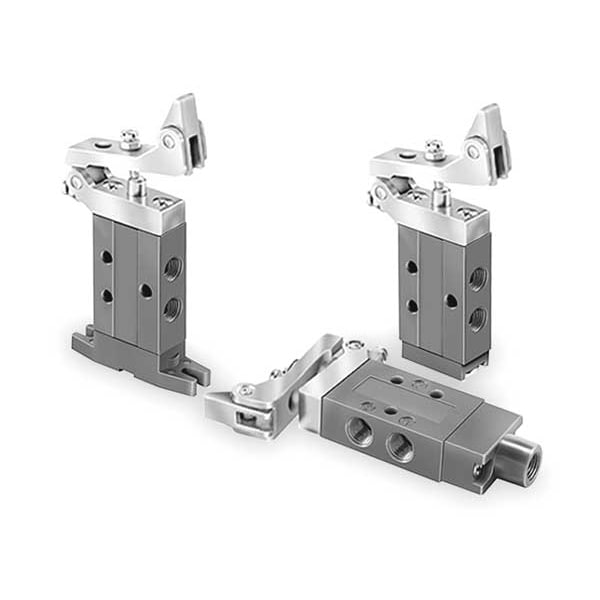 Manual Air Control Valve, Valve Ways and Positions 3-Way/2-Position, Valve Port Size 1/8 in, Connection NPT, Valve Actuator / Return 1-Way Tripper / Spring, Max. CFM - Valves 0.2 cfm, Valve Max. Pressure Rating 150 psi, Valve Temp. Range 32 Degrees to 175 Degrees F, Center Position Closed, Coefficient of Volume 0.2, Body Material Aluminum, Overall Length 5 1/4 in, Overall Height 2 3/16 in, Overall Width 5/8 in, Series DirectAir 2, Manual Air Control Valve
