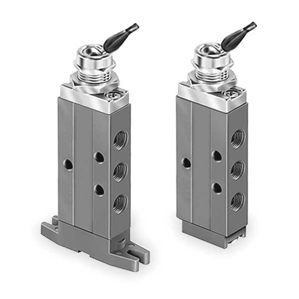 Manual Air Control Valve, Valve Ways and Positions 4-Way/2-Position, Valve Port Size 1/8 in, Connection NPT, Valve Actuator / Return Toggle / Spring, Max. CFM - Valves 0.2 cfm, Valve Max. Pressure Rating 150 psi, Valve Temp. Range 32 Degrees to 175 Degrees F, Center Position Not Applicable, Coefficient of Volume 0.2, Body Material Aluminum, Overall Length 4 13/16 in, Overall Height 1 5/16 in, Overall Width 5/8 in, Series DirectAir 2, Manual Air Control Valve