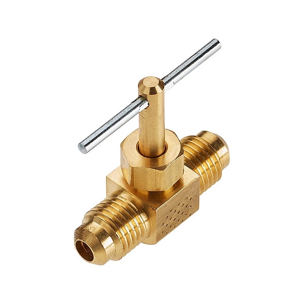 Needle Valve, Straight, Body Material Brass, Tube Size 3/8 in, Tube Connection, Stem Type Brass, Seal Material Neoprene, Handle Material Brass, Max. Pressure 150 psi, Temp. Rating -45 Degrees to 250 Degrees F, Max. Height 1 35/64 in, Length 1 55/64 in, Standards ISO 14001, ISO 9001, RoHS