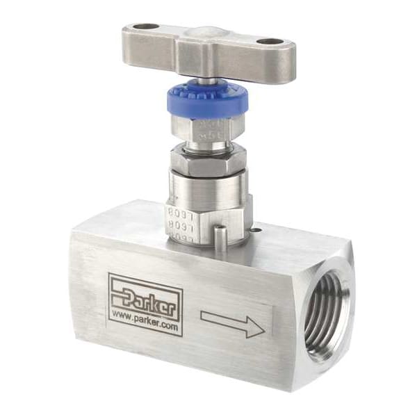 Needle Valve, Straight, Body Material 316 Stainless Steel, Pipe Size 1/4 in, FNPT Connection, Stem Type Non-Rotating, Seal Material PTFE, Handle Material Stainless Steel, Max. Pressure 6,000 psi, Temp. Rating -65 Degrees to 450 Degrees F, Max. Flow 0.35 gpm, Max. Height 3 1/8 in, Length 2 1/8 in, Standards C Certified