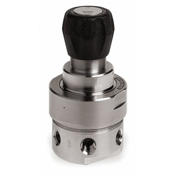 Pressure Regulator, Series IR5003, Body Material Stainless Steel, Inlet Size 1/4 in, Outlet Size 1/4 in, Length 2 3/4 in, Height 5 1/4 in, Application Gas, Connection Type NPT, Pressure Adjustment Range 3 to 100 psi, Gauge Port Size 1/4 in, Seal Material PCTFE, Max. Temp. 150 Degrees F, Pipe Size 1/4 in, Max. Pressure 3,500 psi, Standards CRN, Compliance ISO 9001
