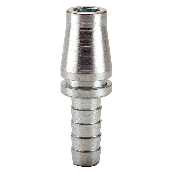 Quick Connect Hose Coupling, Schrader, Steel, Plug, Male, Hose Barb, Coupling Size 1/2 in
