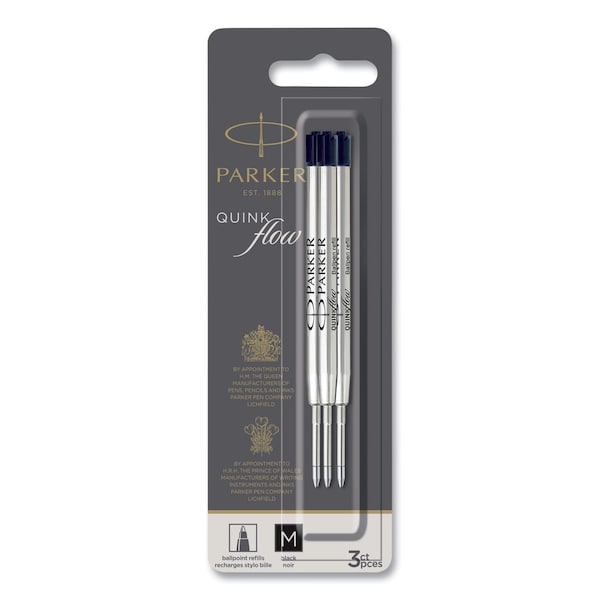 Quinkflow Refill for Ballpoint Pen, Medium Tip, Black Ink, 3PK