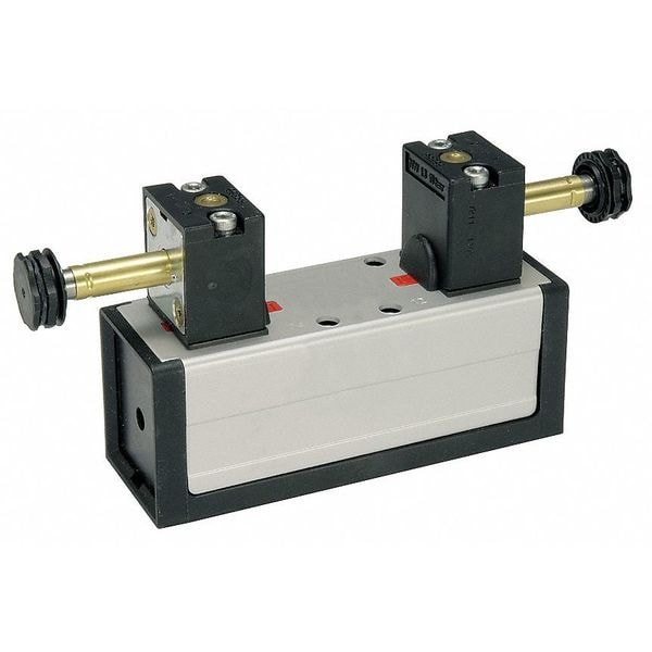 Solenoid Air Control Valve, Valve Ways and Positions 4-Way/3-Position, Voltage -, Center Position Open, Valve Actuator / Return Solenoid / Solenoid, ISO Class 5599-1, Max. CFM - Valves 2.4 cfm, Operational Pressure Range 45 to 145 psi, NEMA Classification NEMA 4, Valve Vacuum Range 0 to 28 in Hg, Body Style Base-Mounted, Coefficient of Volume 2.4, Plug-In Electrical Connections, Shifting Technology Ceramic Plate, Ambient Temp. Range 14 Degrees to 145 Degrees F, Override Non-Locking