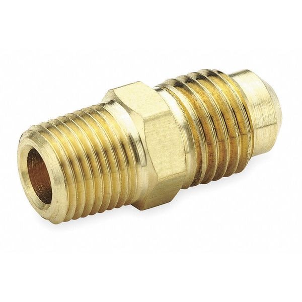 Flared Fitting Elbow, Fitting Material Brass, Flare Angle 45 Degrees , Application Natural Gases, LP Gases, Fitting Side A Connection Type Flared, Fitting Side B Connection Type MNPT, Fitting Side B Pipe Size 3/8 in, Fitting Side A Tube Outer Diameter 3/8 in, Fitting Thread Size 5/8 In.-18, Hex Size 11/16 in, Maximum Operating Pressure 1,000 psi, Maximum Operating Temperature 250 Degrees F, Overall Length 1 13/32 in, Specific Fitting Shape Straight Adapter, Standards SAE J512, SAE J513