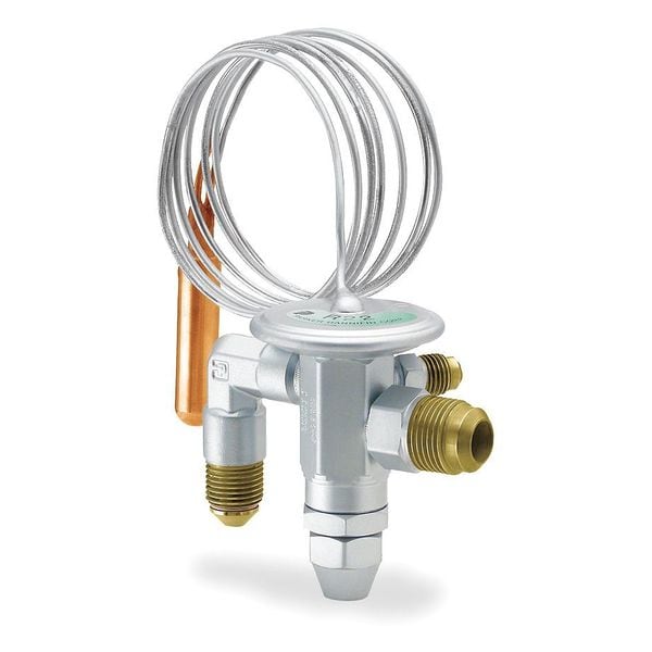 Thermostatic Expansion Valve, Adjustable, R-134A, Nominal Capacity (Tons) 2 to 3, External, SAE Flare Angle Connection, Connector Inlet (In.) 3/8 in, Connector Outlet (In.) 1/2 in, CECJW, -40 to 60, Capillary Length (In.) 60 in, Reducing Flare Nut Size (In.) 3/8 x 1/4, 10, Accuracy, Maintained Over a Wide Variation in Evaporator Load, Thereby Minimizing Hunting Flood Back and Coil Starving Problems, Balanced, 750-70, Externally Adjustable, Includes Sensing Bulb Mounting Clamp, Adjustable Range -