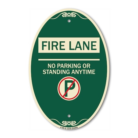 Fire Lane - No Parking or Standing Anytime W, 12 In X 18 In Architectural, Heavy Gauge Aluminum