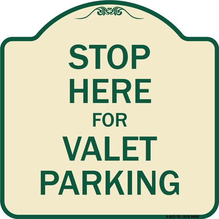 Designer Series-Stop Here For Valet Parking Tan & Green Heavy-Gauge Alum, 18" x 18", TG-1818-9886