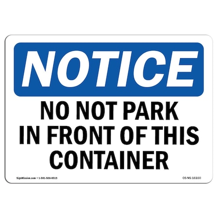 OSHA Sign, No Parking In Front Of This Container, 10in X 7in Decal, 7" W, 10" L, Landscape