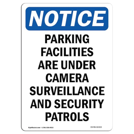 OSHA Sign, Parking Facilities Under Surveillance, 18in X 12in Decal, 12" W, 18" L, Portrait