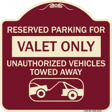 Reserved Parking Valet Unauthorized Vehicles Towed Away Heavy-Gauge Alum, 18" x 18", BU-1818-23141