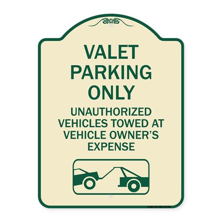 Valet Parking Unauthorized Vehicles Towed Owner Expense Aluminum Sign, 18" L, 24" H, TG-1824-22754