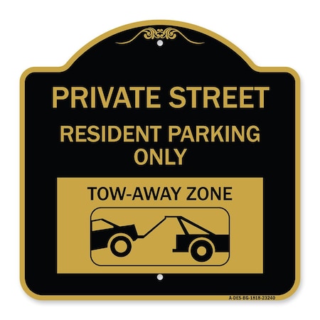 Private Street Private Street Resident Parking Tow Away Zone Aluminum Sign, 18" x 18", BG-1818-23240