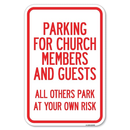 Parking for Church Members and Guests A Heavy-Gauge Aluminum Sign, 12" x 18", A-1218-23445