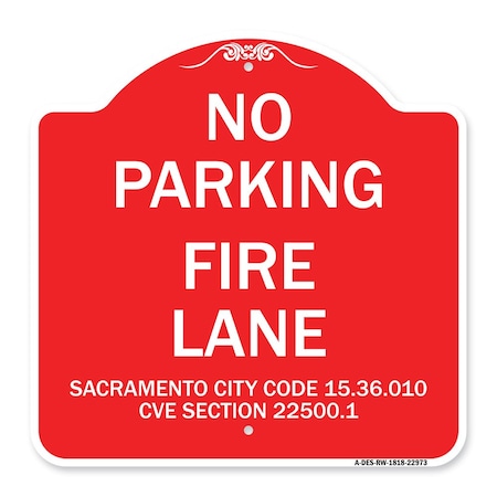Sacramento No Parking Fire Lane City Code 15.36.010 CVC Section 22500.1, Red & White, RW-1818-22973