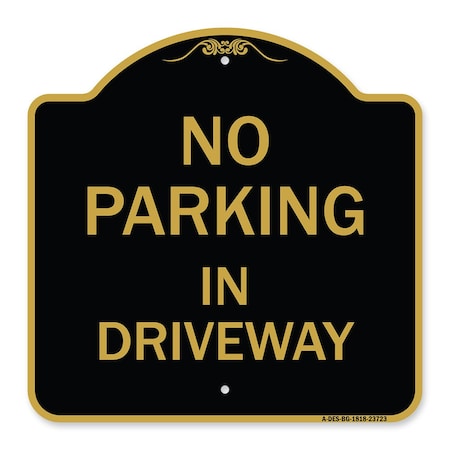 Designer Series Sign-No Parking in Driveway, Black & Gold Aluminum Sign, 18" x 18", BG-1818-23723