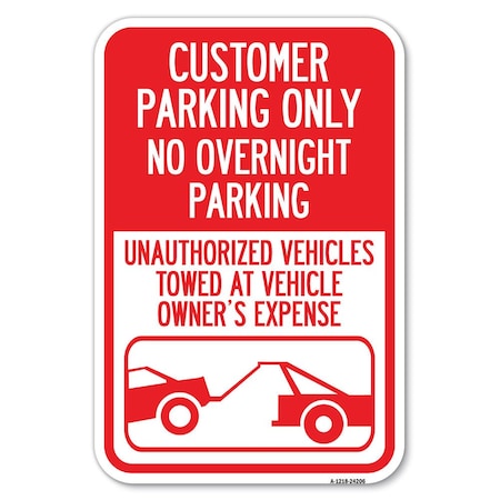 Customer Parking Only No Overnight Park Heavy-Gauge Aluminum Sign, 12" x 18", A-1218-24206