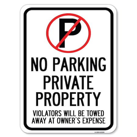 Private Property Violators Towed Away Owner Expense W/ No Parking Alum, 24" L, 18" H, A-1824-23244