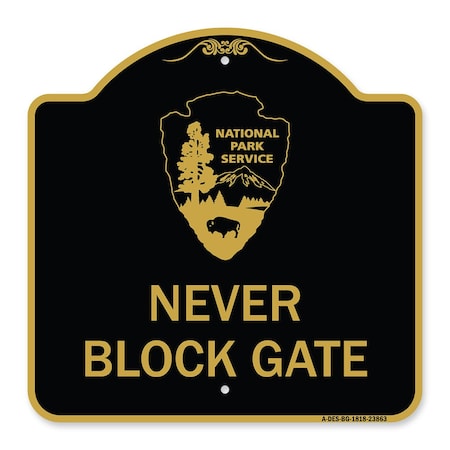 Designer Series Sign-Parking in Rear, Black & Gold Aluminum Sign, 18" x 18", BG-1818-23437
