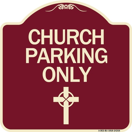 Church Parking Only Cross Symbol Heavy-Gauge Aluminum Architectural Sign, 18" x 18", BU-1818-24268