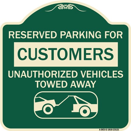 Reserved Parking for Customers Unauthorized Vehicles Towed Away Alum Sign, 18" x 18", G-1818-23121