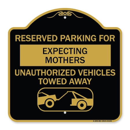 Reserved Parking for Expecting Mothers Unauthorized Vehicles Towed Away, Black & Gold, BG-1818-23104