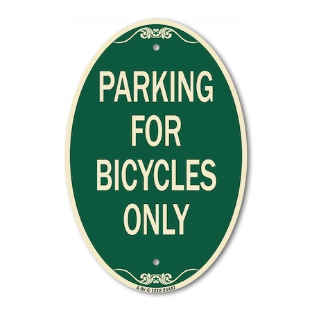 Parking for Bicycles Only Sign, 12 Inch X 18 Inch Architectural Oval, Heavy Gauge Aluminum