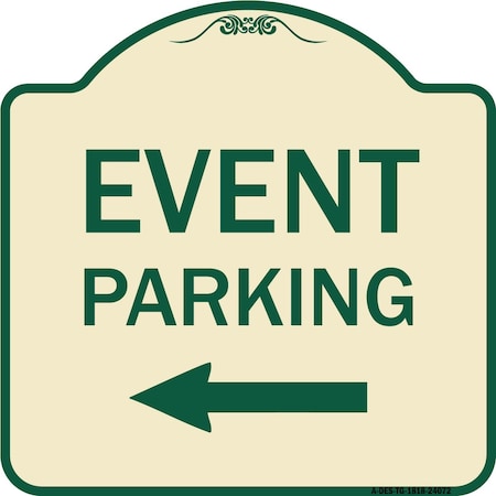 Event Parking Only With Left Arrow Heavy-Gauge Aluminum Architectural Sign, 18" x 18", TG-1818-24072