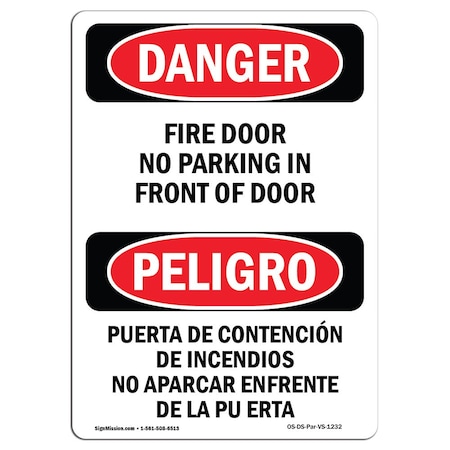 OSHA Sign, Fire Door No Parking Bilingual, 18in X 12in Aluminum, 12" W, 18" L, Bilingual Spanish