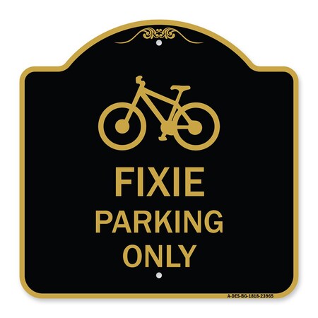 Designer Series Sign Fixie Parking Sign, Black & Gold Aluminum Sign, 18" L, 18" H, BG-1818-23965