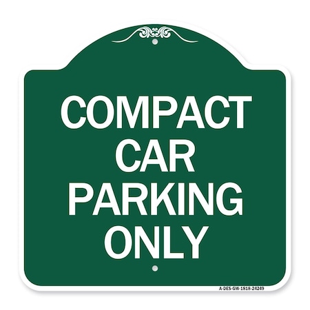Designer Series Compact Car Parking Only, Green & White Aluminum Sign, 18" x 18", GW-1818-24249