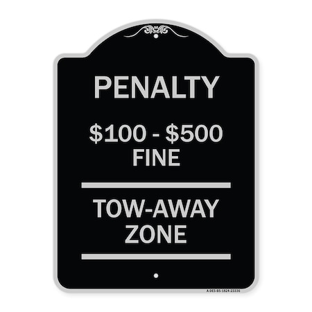Penalty $100-$500 Fine Tow-Away Zone Heavy-Gauge Aluminum Sign, 18" x 18", BW-1818-23334