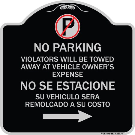 Violators Will Be Towed Away at Vehicle Owners Expense No Se Estacione Su Vehiculo, BS-1818-22736