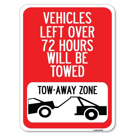 Vehicles Left Over 72 Hours Towed Tow-Away Zone Heavy-Gauge Alum Parking, 18" x 24", A-1824-22739