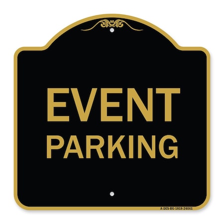 Designer Series Sign-Event Parking, Black & Gold Aluminum Sign, 18" x 18", BG-1818-24061