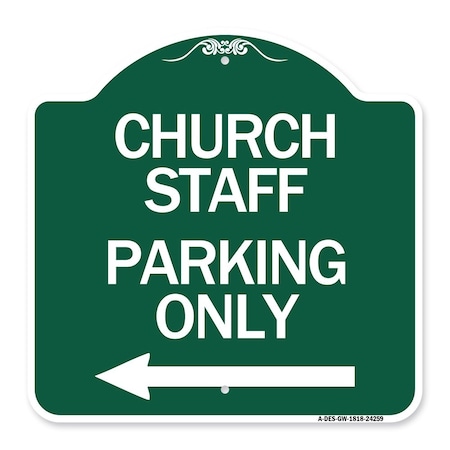 Church Staff Parking W/ Left Arrow, Green & White Aluminum Sign, 18" x 18", GW-1818-24259