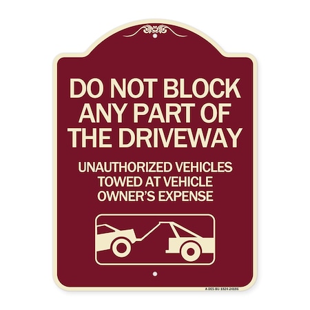 Do Not Block ANY Part of the Driveway Unauthorized Vehicles Towed at Owner Expense, BU-1824-24186