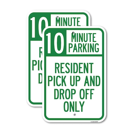Minute Parking Sign Resident Pick-Up and Drop-Off Only, 18'' X 24'', Heavy Gauge Aluminum, 2PK