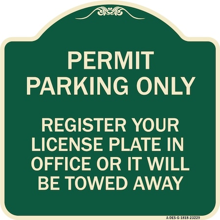 Register Your License Plate in Office or It Will Towed Away Aluminum Sign, 18" x 18", G-1818-23229