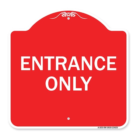 Designer Series Parking Lot Entrance Only, Red & White Aluminum Sign, 18" x 18", RW-1818-23425