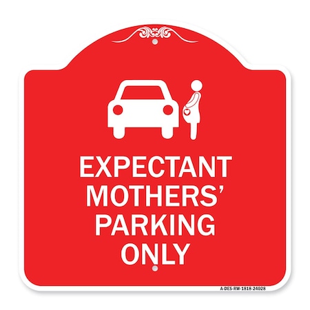 Expectant Mothers Parking W/ Graphic, Red & White Aluminum Sign, 18" L, 18" H, RW-1818-24028
