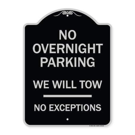 No Overnight Parking We Will Tow No Exceptions Heavy-Gauge Alum Sign, 18" L, 24" H, BS-1824-23826
