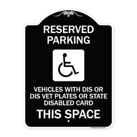 Reserved Parking Vehicles or Dis Vet Plates or State Disabled Card This Space, BW-1824-22999