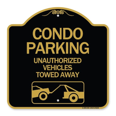 Condo Parking-Unauthorized Vehicles Towed Away With Car Tow Graphic, Black & Gold, BG-1818-24238