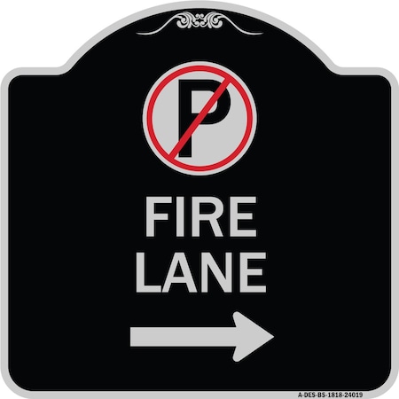 Fire Lane No Parking and Right Arrow Heavy-Gauge Aluminum Sign, 18" x 18", BS-1818-24019