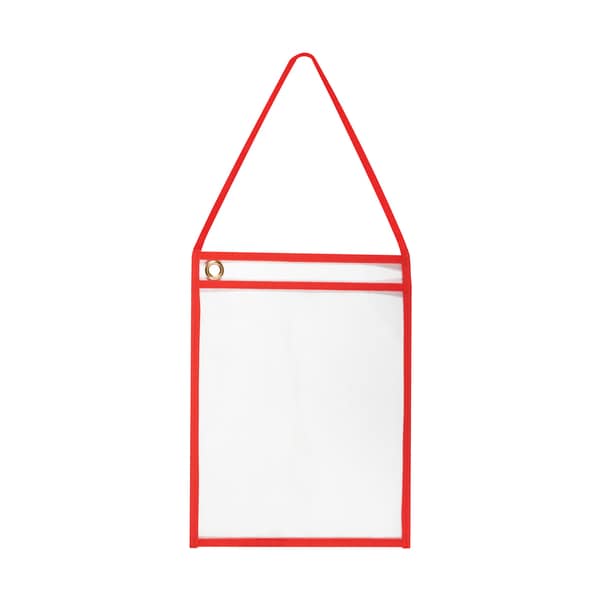 9 x 12" Red Deluxe Job Ticket Holders Convenient hanging straps loop over hooks, pegs and machinery. Stitched for added strength. Clear on both sides for great visibility. Oversized corner metal eyelet for hanging.