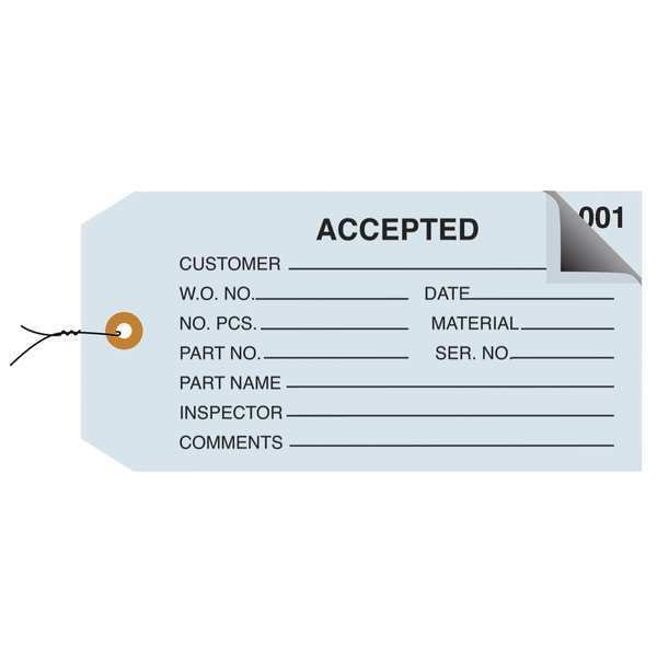 Inspection Tags, 2 Part, Numbered 001-499, Pre-Wired, "Accepted", 4 3/4" x 2 3/8", Blue, PK500