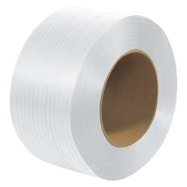 Polypropylene Strapping, Machine Grade, Embossed, 9" x 8" Core, 1/2" x 9900', White, 1/Coil