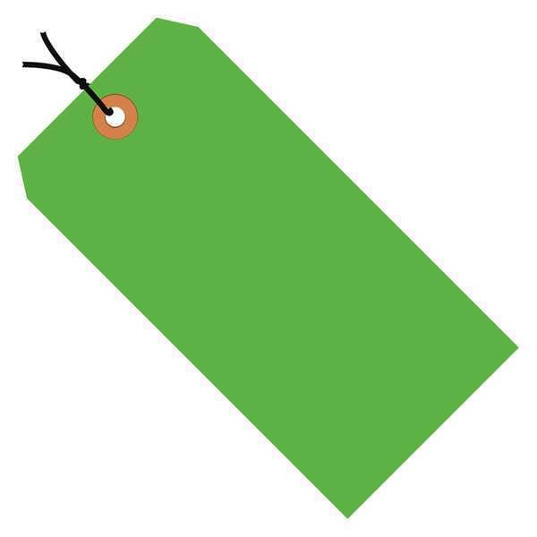 Shipping Tags, Pre-Strung, 13 Pt., 4 1/4" x 2 1/8", Fluorescent Green, PK1000